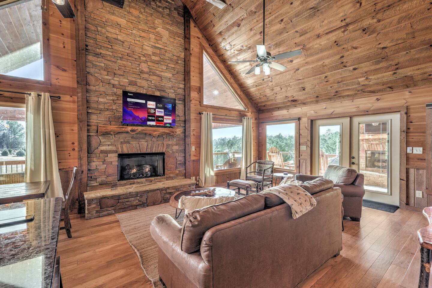 Like past guests, you’ll love our cabin, Bella Emelia, for your Blue Ridge trip! Here’s why: - 10 min drive to Blue Ridge - Mountain views - Great reviews - No hidden fees - 3k sqft - Basement: 1 King Bed - Main floor: 1 King En Suite + 1 King - Top floor: 2 Queen w/ En Suite Bathroom - Hot tub - Firepit - Arcade - Pool table - Fast Wifi - Fireplaces - Paved roads/driveway - Fully equipped kitchen - Fishing pond We'd love to host you! Don't miss out, openings are limited & filling fast